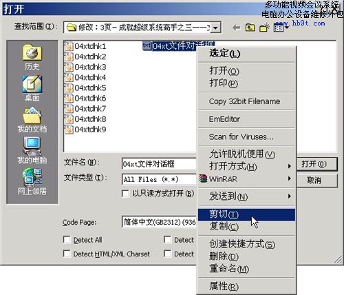 在文件對話框中右擊選中的文件,(如圖1)所示,是不是出了多了一個(gè)粗體顯示的“選定”項(xiàng)目外,其余的命令都與資源管理器中的右擊一樣呢,刪除、復(fù)制、粘貼文件都可以在這里進(jìn)行。