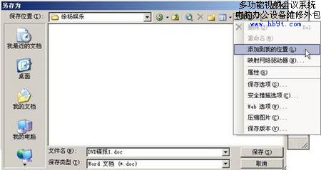 Office軟件的打開/保存對話框比較特殊,它用的不是標(biāo)準(zhǔn)Windows打開/保存對話框,以O(shè)ffice XP為例,在打開/保存對話框中選定一文件夾,然后單擊對話框“工具→添加到’我的位置’”命令,(如圖2)所示,就可以在文件對話框的“查找位置”下找到新文件夾,單擊即可快速訪問它。右擊可以看到刪除、小圖標(biāo)、重命名等命令,可以對新文件夾進(jìn)行管理。