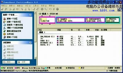 重新啟動(dòng)電腦進(jìn)入Windows XP,運(yùn)行PQ8.0,可以看到當(dāng)前硬盤中的分區(qū)情況,如下圖: