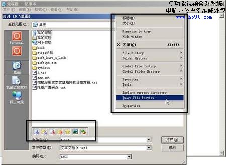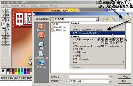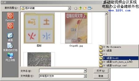在Windows下工作時,總有幾個文件夾是我們平時經(jīng)常要去的。但是Windows的文件對話框只提供了“歷史”、“桌面”、“我的電腦”和“網(wǎng)上鄰居”幾個選項供我們選擇。安裝Dialogue Box Assistant軟件,在打開和保存文件對話框的工具欄上會發(fā)現(xiàn)兩個小圖標(biāo),該軟件會把最近打開/保存過的文件/文件夾保存起來,(如圖9)所示,只要單擊最右邊的按鈕就可以看到我們最近訪問過的文件夾,單擊就會馬上切換到相應(yīng)的文件夾下。單擊對話框工具欄Dialogue Box Assistant左邊小按鈕會顯示最近打開過的文件。